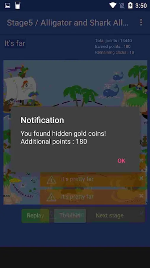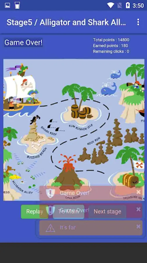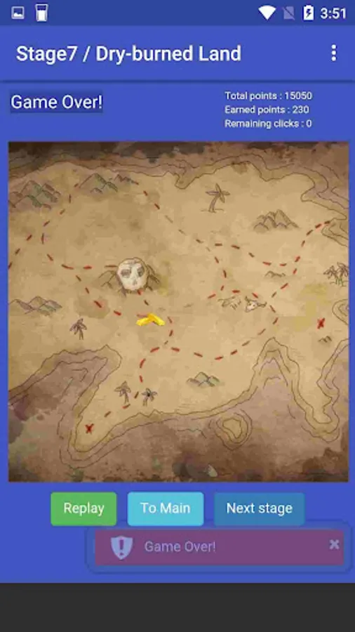 - When the given number of clicks is reached or a treasure is found, the game ends.