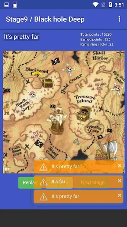 2. Guess the location of the treasure chest by referring to top and bottom messages. Guess and Click within a 1m radius!