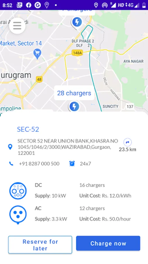 Use BluSmart Charge to locate and reserve charging slots from a list of BluSmart charging stations in Gurgaon and Delhi/ NCR.