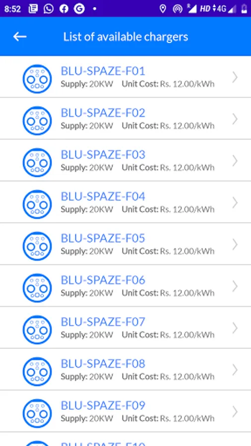 4. Select from the list of available charging guns.