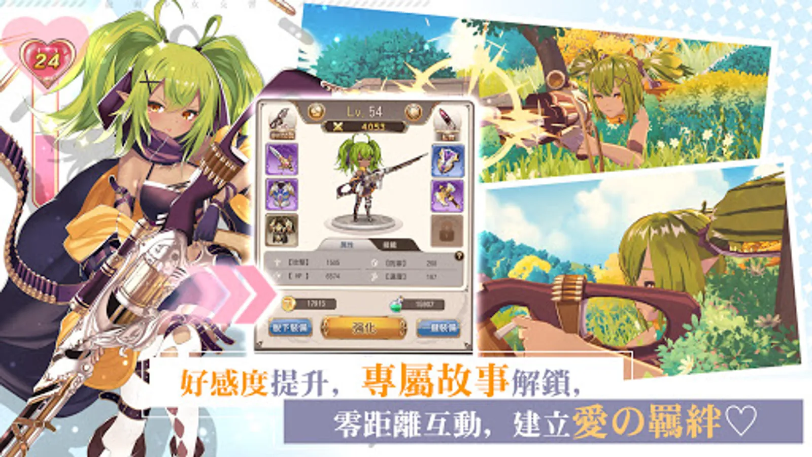 More than a hundred beautiful hunter girls with different styles can match freely, and you can touch, give gifts, and cultivate tacit understanding with zero-distance interaction. Growing up with your hunter girl can also unlock super special paintings!