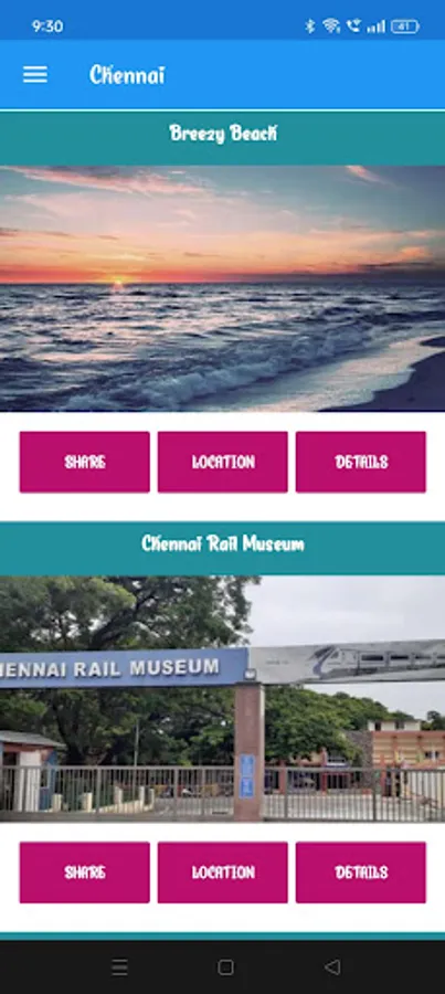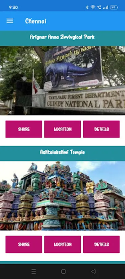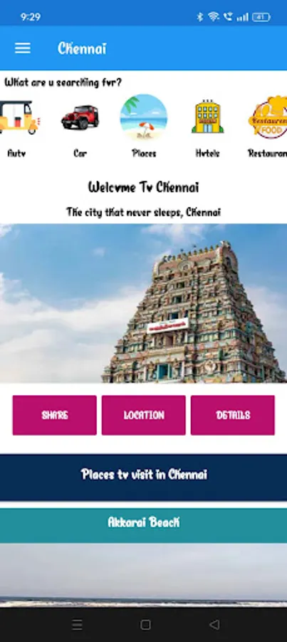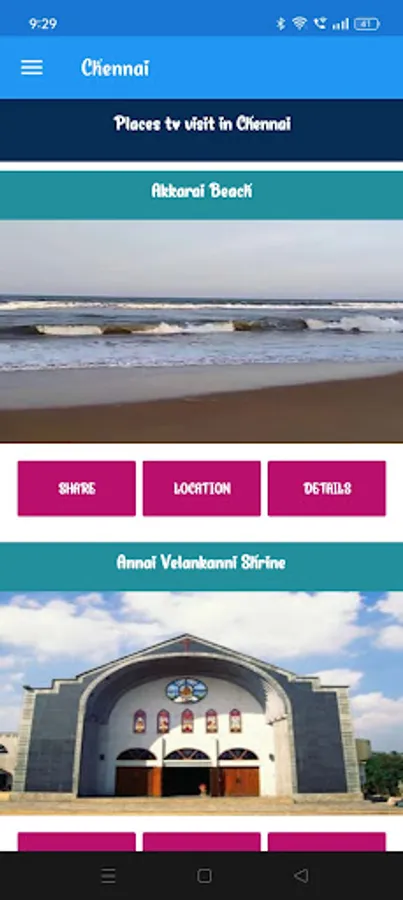 This App contains the details of the Chennai city, India.Chennai is the capital city of Tamil Nadu, a state in southern India. It is located on the Coromandel Coast of the Bay of Bengal and has a rich cultural and historical heritage. Through this app we can view the popular places to visit in Chennai like Marina Beach, Kapaleeshwarar Temple, Fort St. George and Government Museum and many others.