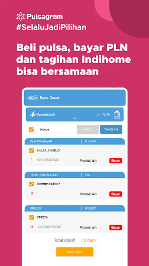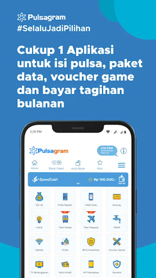 Register and try the Pulsagram application first, enjoy the convenience of topping up credit, data packages, e-Money, paying electricity bills, PDAM, internet and paying other monthly bills with just one application.