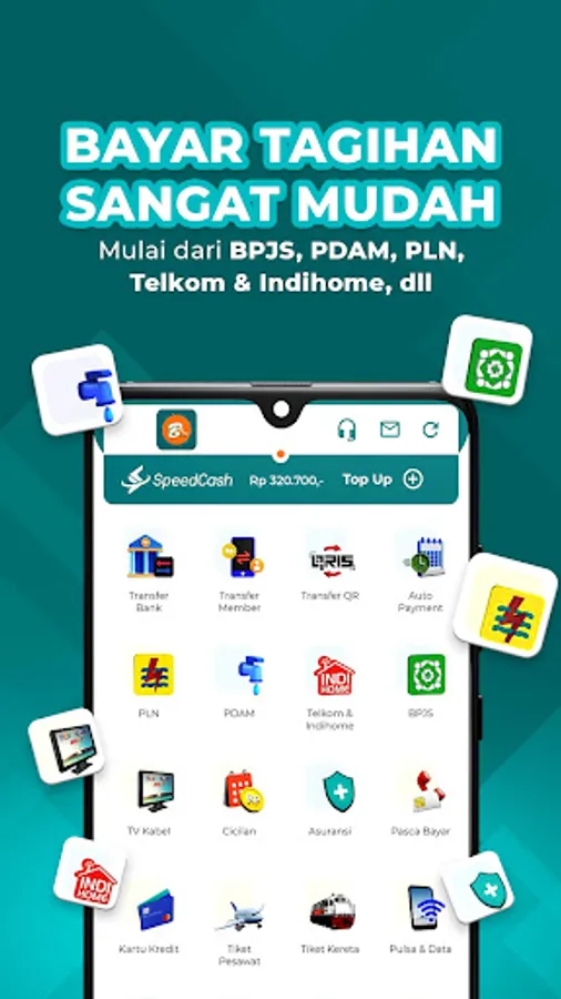 the cheapest and most complete service: credit, data packages, e-money, PLN, PDAM, Telkom and purchasing airline tickets