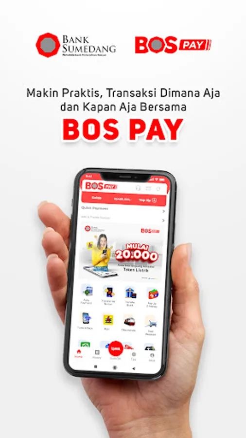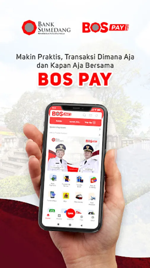 BOS PAY is a payment application owned by Bank Sumedang in collaboration with Speedcash which is dedicated to Bank Sumedang customers and the Indonesian community in general, which functions as an all-round digital financial application with very complete features, which is able to fulfill all your needs, just from a smart phone just,
