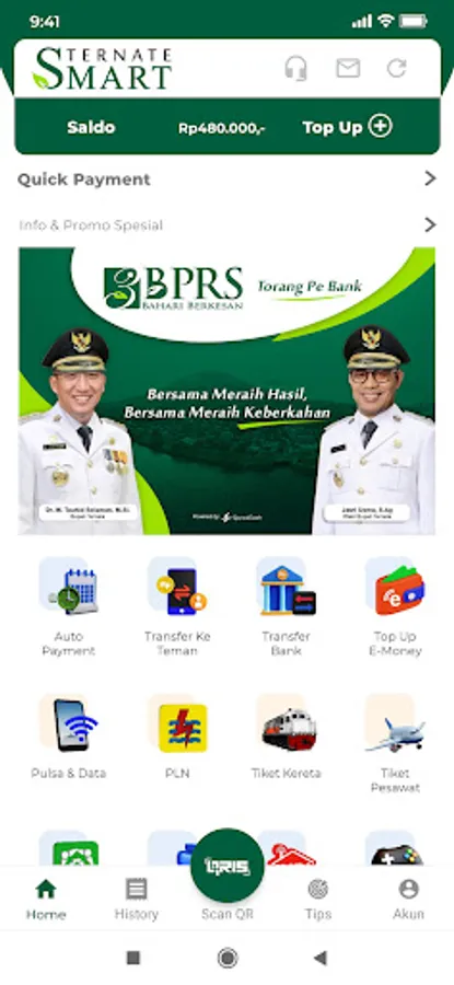 Ternate Smart is a payment application owned by BPR Ternate in collaboration with Speedcash which is dedicated to BPR Ternate customers and Indonesian people in general,