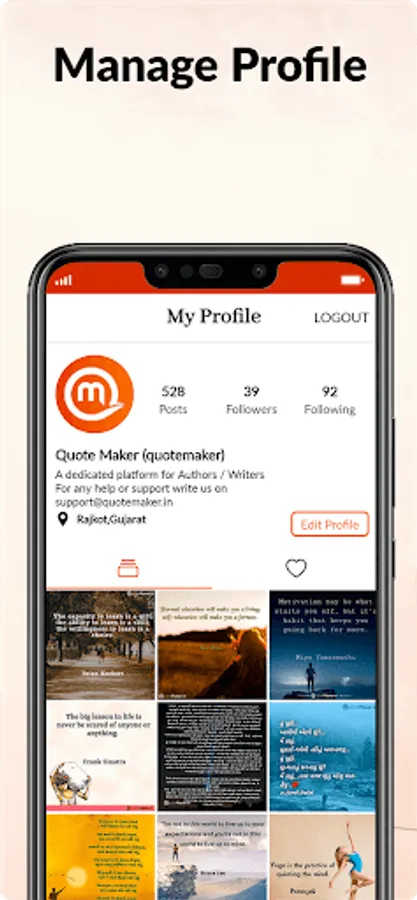 Here, you can show your skills Create quotes, poems, stories, micro-tales, haikus or any type of write-ups and design them into stunning posts using in-app designing tools. Share your own thoughts and emotions in a post through your creative writing skills. QuoteMaker is a completely new experience of sharing your emotions, and thoughts through this post. It is a paradise for writers, readers, and poets.