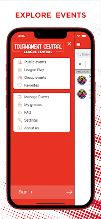 It's Tournament Central in your phone! Find events, create events, design and share your venue in minutes, route attendees to your event plus much more.