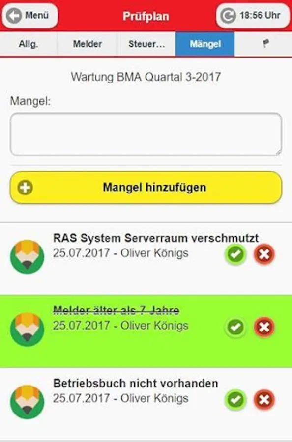 Digital maintenance of fire alarm systems with test plans and live reports from the BMZ