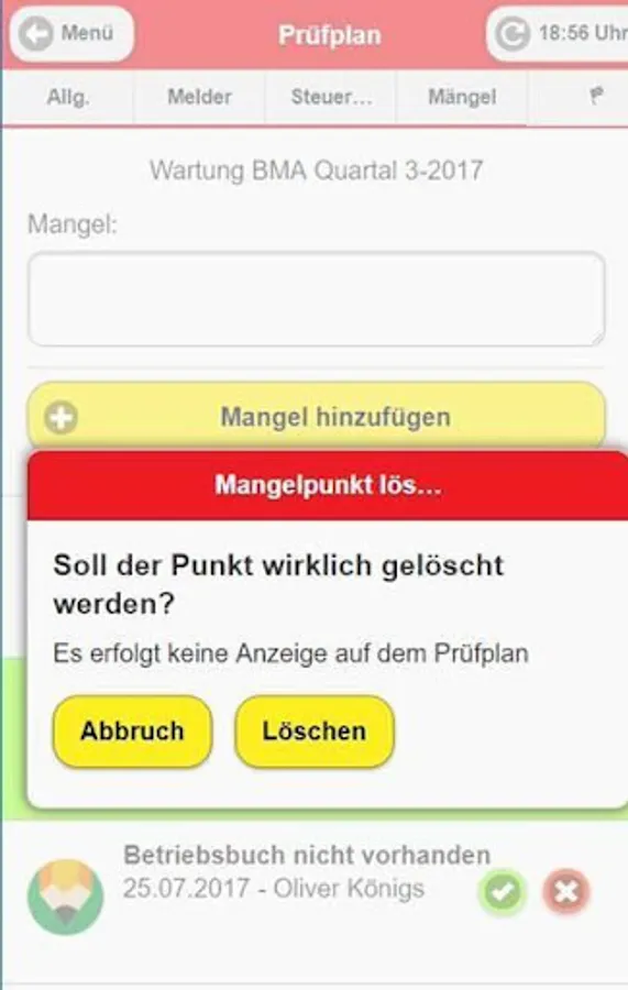 The core element of the BMAcloud is the maintenance inspection plan. The test plans are automatically calculated for each maintenance interval. These can be read in from the system programming.