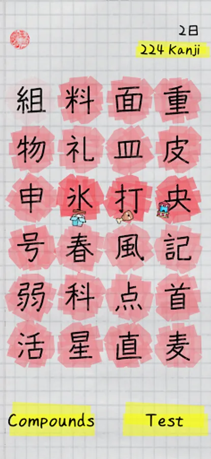 I built Kanji Book to aid in my own learning of kanji. I wanted something that would let me learn the 2136 jōyō kanji at my own pace. I was inspired by Japanese style journals which extensively use highlighters and stickers to brighten up the otherwise dull contents. In Kanji Book, you'll build your own workbook which tracks your progress visually. You can learn as many kanji as you want each day. I find that 2 or 3 is a good cadence. I tend to play 3 or 4 times a day, whenever I can find a spare 5 minutes. I try to use my phone as a tool, not a distraction. I hope you find some value in Kanji Book. Let me know how many you learn!