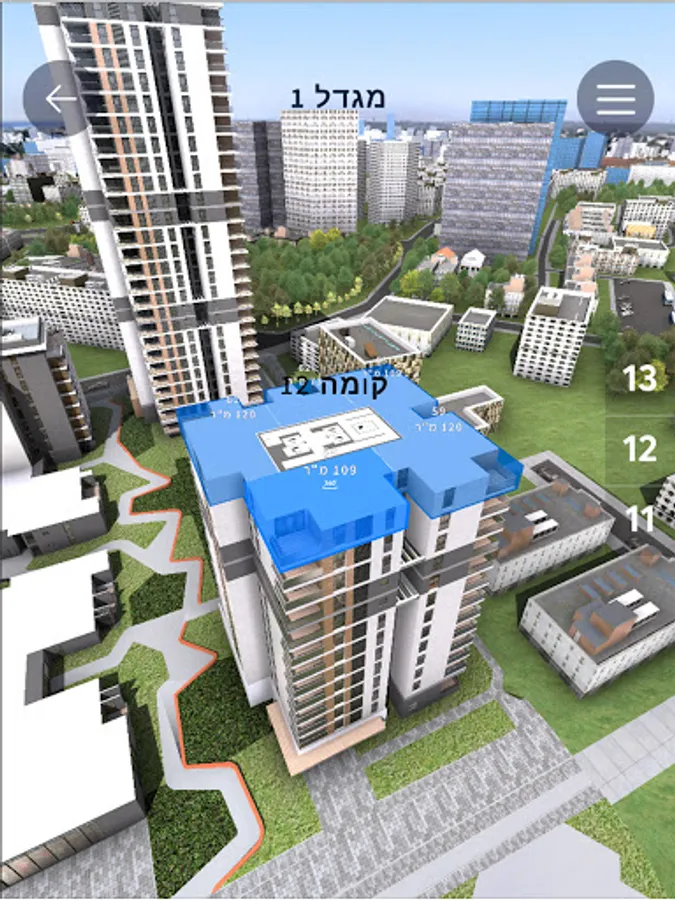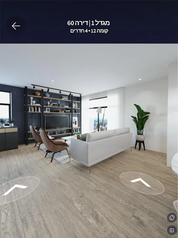 In the app, you can get a three-dimensional experience of the project environment and the apartments offered for sale at the click of a button. The app allows you to get data about the requested apartment according to filters of size, price, location and more ... and go through a spectacular three-dimensional tour inside the apartment and the external project environment.
