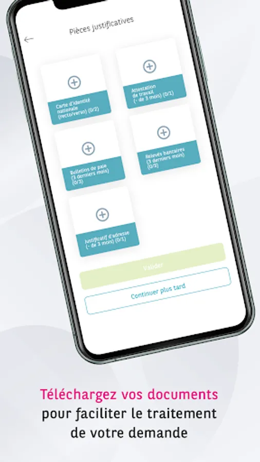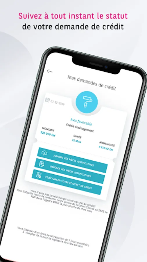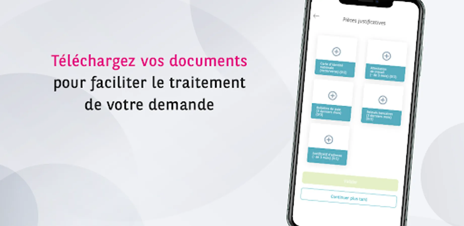 In just a few seconds, enter your RIB and download your credit agreement immediately! Take the required supporting documents and scan them directly with your mobile to optimize the processing of your file. You do not have all the justifying parts on you? No worries, choose the BMCI agency of your choice and take your original documents to finalize your request.
