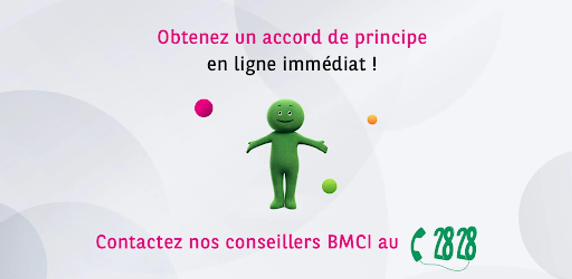 * Agreement in principle on the basis of the elements declared by the customer. The definitive agreement is given on the basis of the supporting documents presented to the BMCI and after the complete study of the file. BMCI can not be committed to the customer on the basis of the agreement in principle.