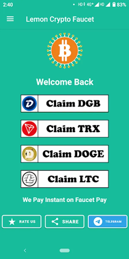 Lemon Crypto Faucet is a Crypto reward application. By using this app user can earn Free Dogecoin, Litecoin DGBcoin and Troncoin. To develop this app, we use web view features. We have our own website Domain and Hosting. We buy premium Domain and hosting for development of this app.