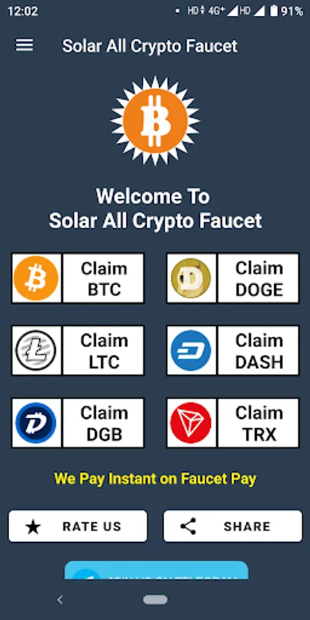 Solar All Crypto Faucet is a Crypto reward application. By using this app users can earn Free Bitcoin, Dogecoin, Litecoin, Bitcoincash, Dashcoin, Etheriumcoin, Digibytecoin and Troncoin . To develop this app, we use web view features. We have our own website Domain and Hosting. We buy premium Domain and hosting for development of this app.