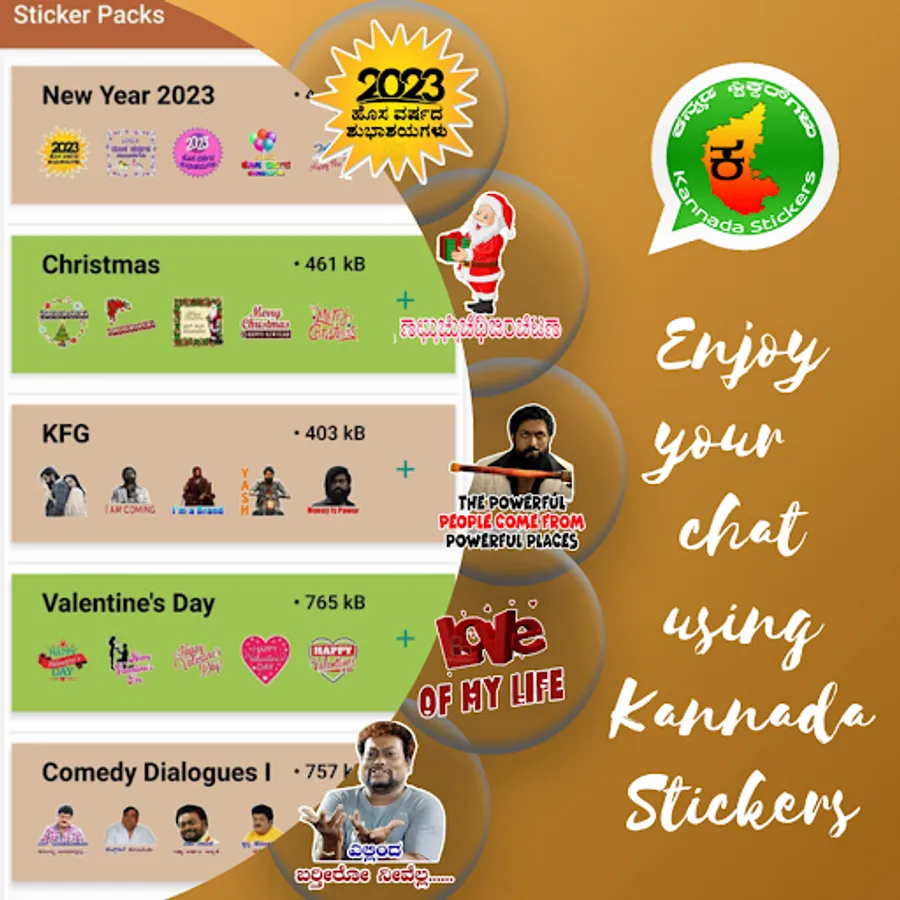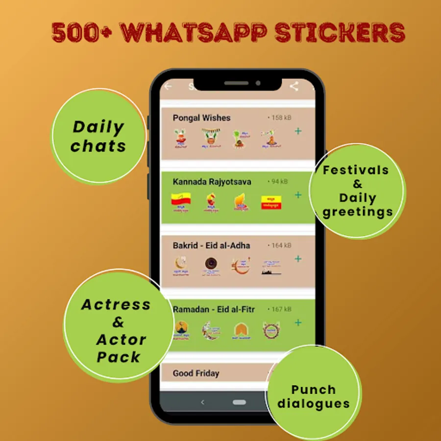 Kannada WhatsApp Stickers includes the most popular punch dialogues from Kannada Movies. Popular Categories - Comedy Dialogues, Hero Dialogues, Meme, Text, Love Messages, Group Chat, Wishes, Festivals