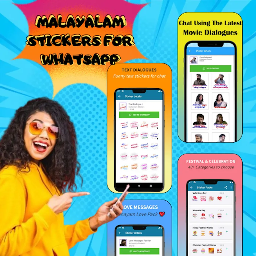 Malayalam WhatsApp Stickers includes the most popular punch dialogues from Malayalam Movies. Popular Categories - Comedy Dialogues, Punch Dialogues, Meme, Text, Word, Love Messages, Group Chat, Wishes, Festivals