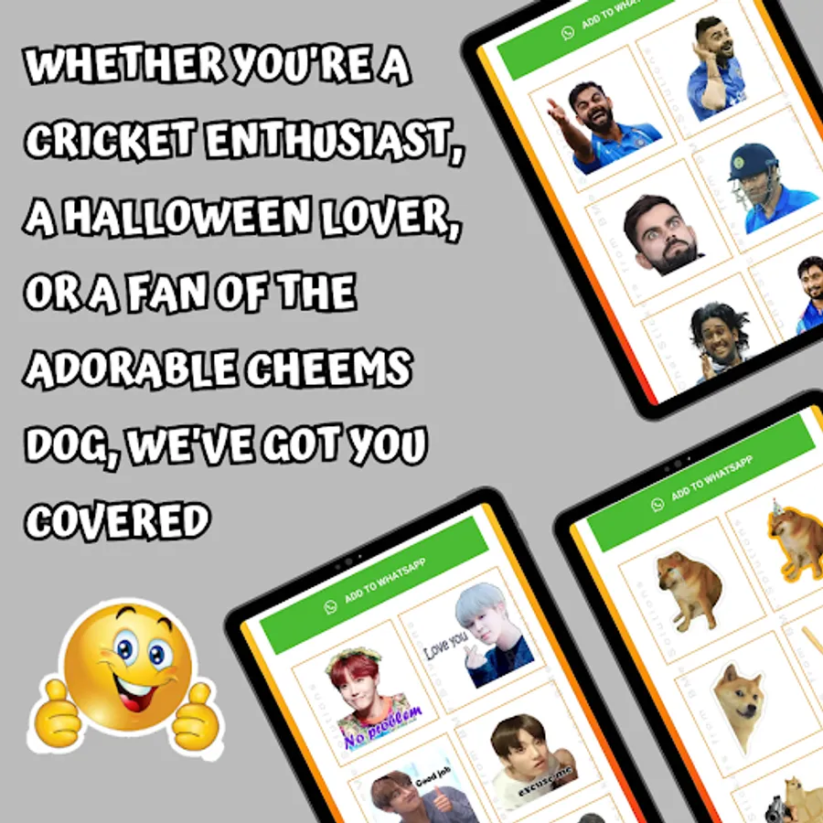 Funny WASticker Sticker Pack comes with popular dialogues and common chat dialogues to use in WhatsApp. The app has a huge collection of text dialogues with which you can directly Add to your WhatsApp.