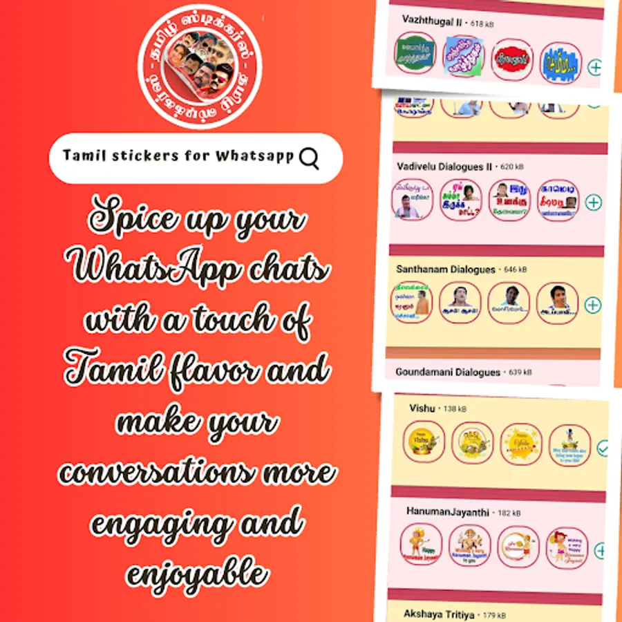 The app has the latest and a big collection of Tamil text messages. Tamil stickers app for WhatsApp includes a wide range of categories.