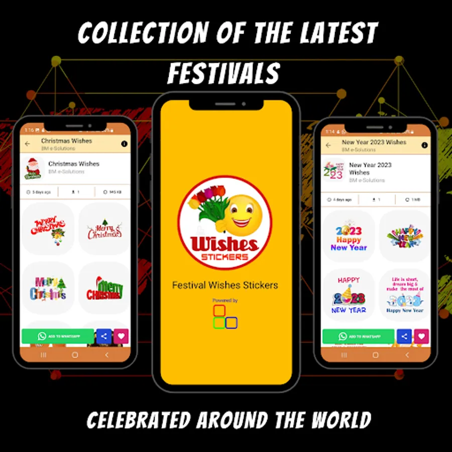 Festival wishes stickers for WhatsApp is the one-stop place to find all festival stickers. The app contains more than 30+ categories of the best collection of festival stickers, religious stickers, and special day stickers. Explore the latest festivals celebrated around the world.