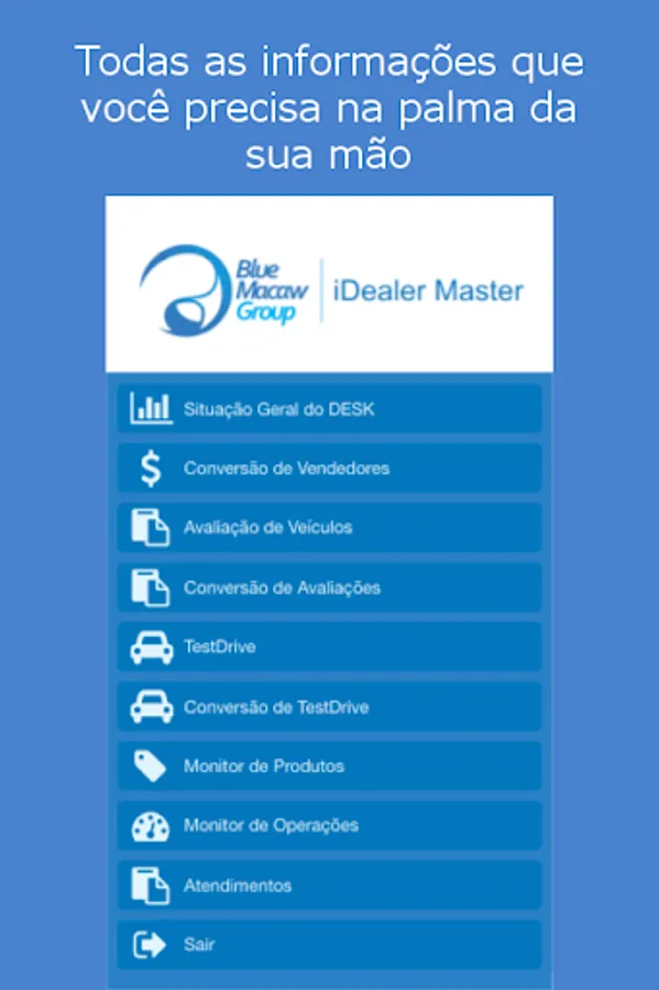The Idealer Master App supplies deficiencies in important points, especially in commercial operation, with well-defined processes and to produce real-time information of the operation of a store. He proportional to view reports of visits by salesmen, sales conversion and assessments, test drive control and vehicle evaluation.
