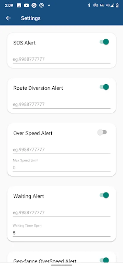 5. Settings: In Settings you can able to change alerts setting and contact numbers.