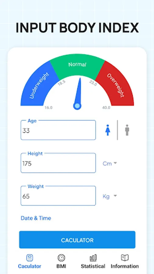 BMI Calculator is an application for calculating and evaluating BMI (Body Mass Index) depending on the information you provide, such as height, weight, age, and gender.