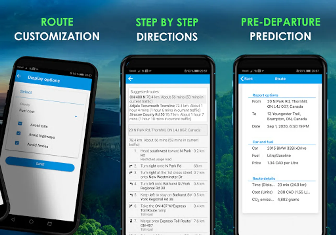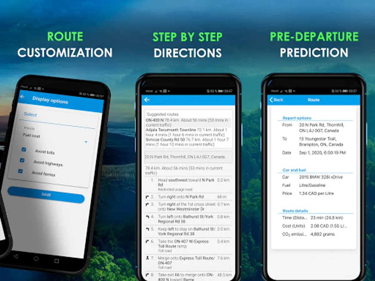 ♻️Reduce Your Carbon Footprint: Feel empowered with the information at your fingertips to select the greenest route to your destination using this trip planner. Clearly view and understand the beneficial factors surrounding each route and see your total carbon footprint in the reporting section by using the gas trip calculator.