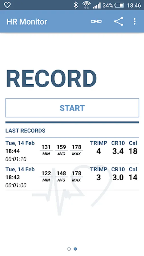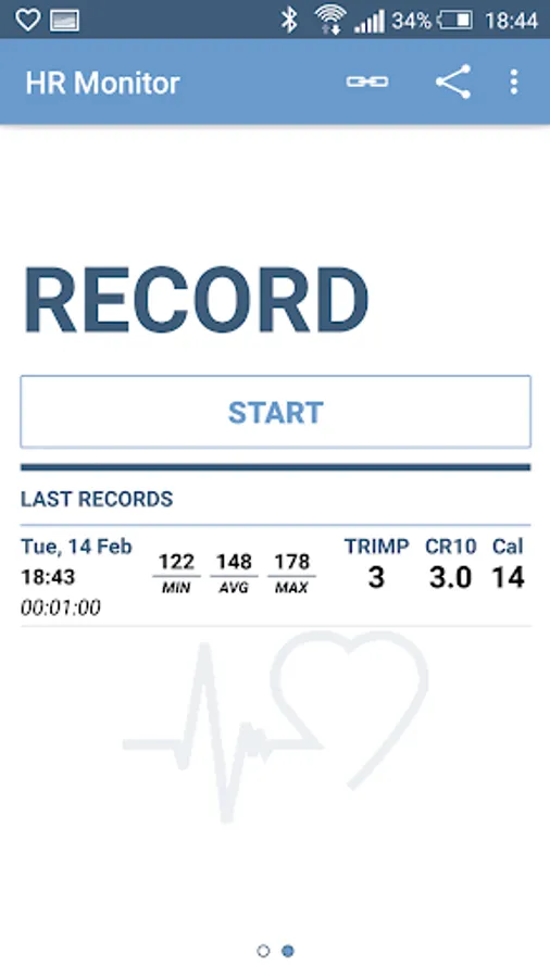 Innovative display and documentation of the heart rate in combination with a Bluetooth Smart chest belt.