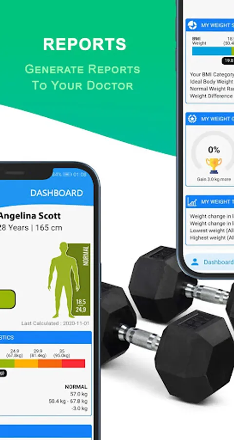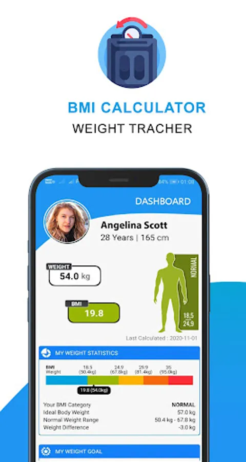 Measure your Body Mass Index (BMI) using your weight and height. It allows you to keep track on your weight loss and visualize with graphs and logs.