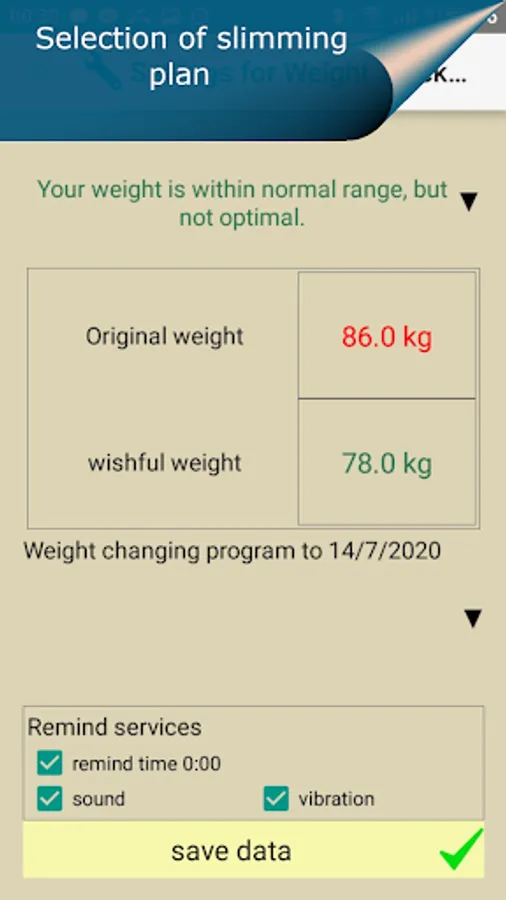 The app offers you several weight loss programs, from the fastest to the gentlest. These slimming programs are personalized and take into account your body mass index (BMI), your age, height, weight, gender and even your physique to calculate your optimal weight.