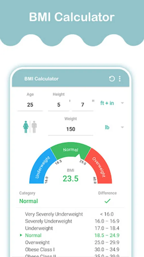 On the basis of your weight and height ratio, the app calculates your BMI. Body Mass Index (BMI) is an easy measure of underweight or obesity. To calculate BMI formula and algorithm is used by the app.