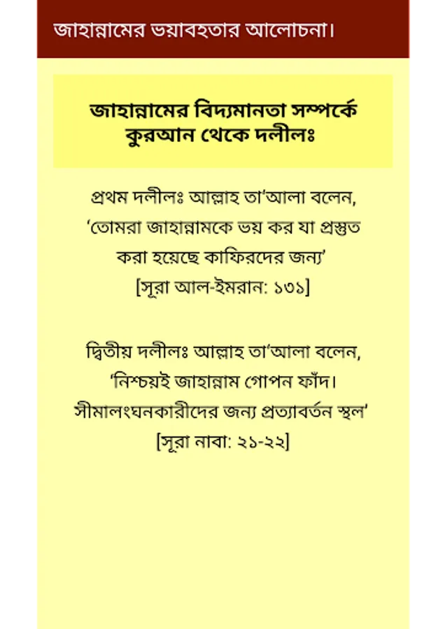 The Bengali Islamic App "to discuss the dangers of Hell