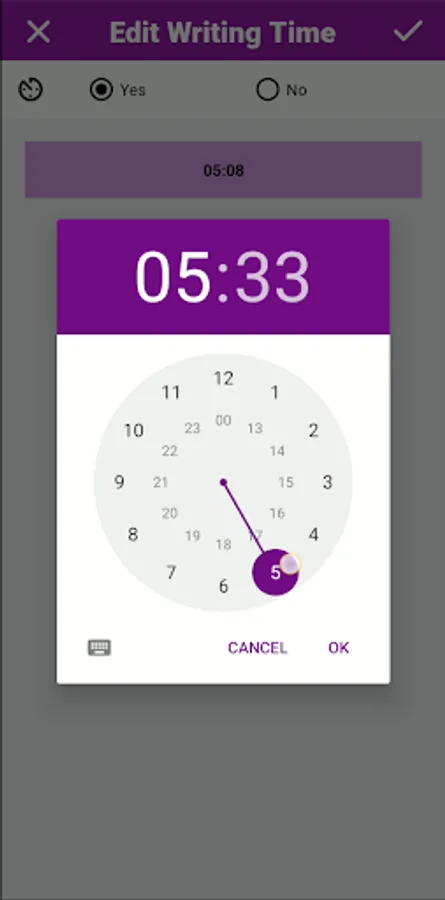 Your app also features a writing clock and calendar that helps you set and pace your writing time periods. You can also enter your start and completion dates for your writing project.