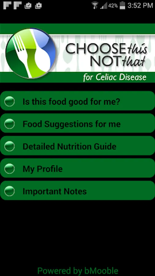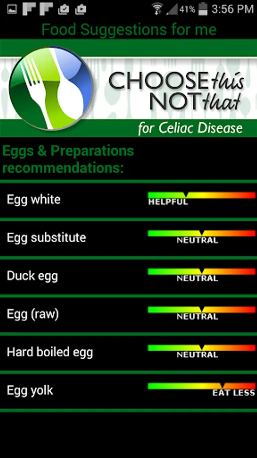Choose This not That for Celiac Disease. This colorful app provides comprehensive and actionable nutrition guidelines for how to cope with Celiac Disease or gluten sensitivity and avoid its symptoms & complications. If you rather tackle health issues and risks through proper nutrition and lifestyle changes as opposed to prescription drugs and other typical medical treatments, then this app is for you! Last update: Nov. 2019.