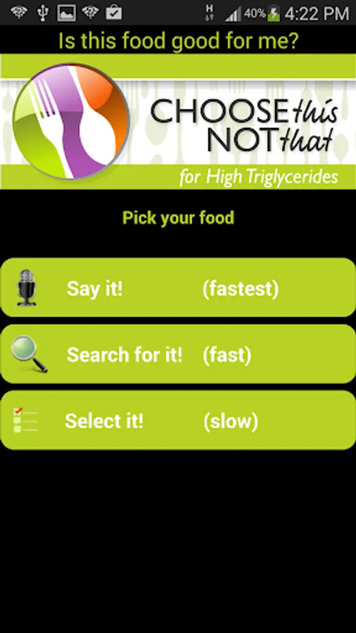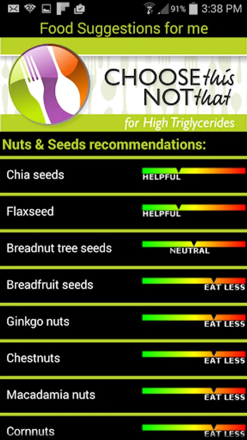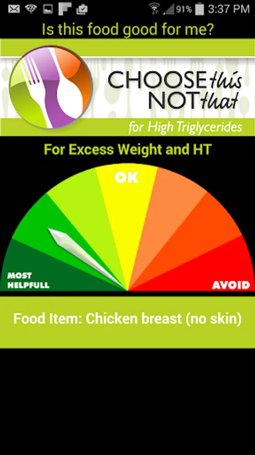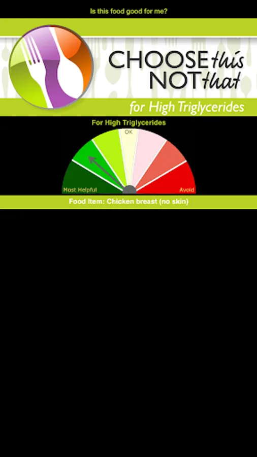 Choose This not That for High Triglycerides. Inside this colorful app, you will find easy to follow suggestions on how to improve your health through nutrition and the food choices you make every day. This app represents the most comprehensive and actionable nutrition guidelines for how to reduce your risk, prevent and combat high triglycerides. If you rather tackle health issues and risks through proper nutrition and lifestyle changes then this app is for you! Last data update: Nov. 2019.