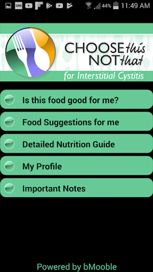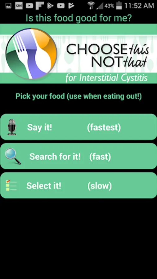 Choose This not That for Interstitial Cystitis (IC). Inside this colorful app, you will find easy to follow suggestions on how to improve your health through nutrition and the food choices you make every day. This app provides comprehensive and actionable nutrition guidelines for how to prevent and reduce your pain and manage symptoms of IC also known as Painful Bladder Syndrome. If you rather tackle health issues and risks through proper nutrition and lifestyle changes then this app is for you! Last updated: Nov. 2019.