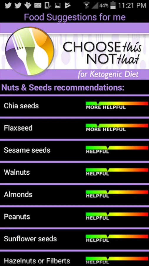 Choose This Not That for Ketogenic (Keto) Diet. Inside this colorful app, you will find easy to follow suggestions on how to improve your health through nutrition and the food choices you make every day. This app provides comprehensive and actionable nutrition guidelines for how to follow the Ketogenic Diet, well known for its effectiveness for Epilepsy, and now being considered for treating a variety of other disorders. If you rather tackle health issues and risks through proper nutrition and lifestyle changes then this app is for you!