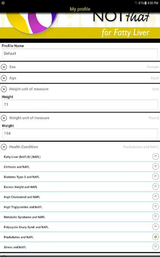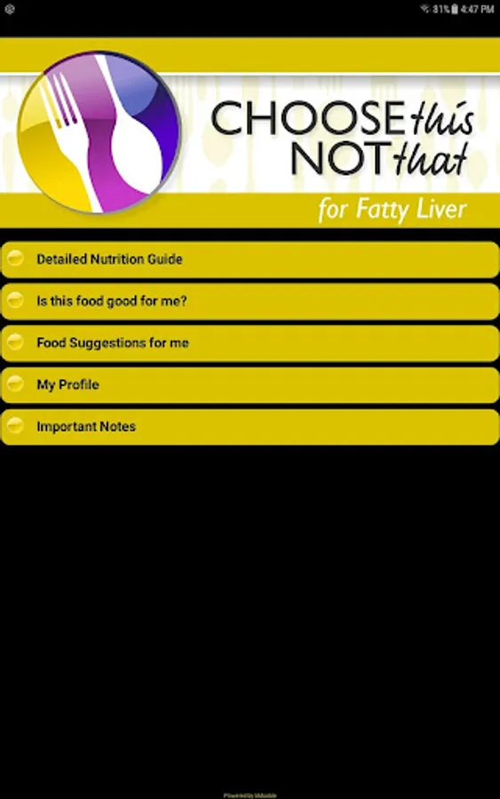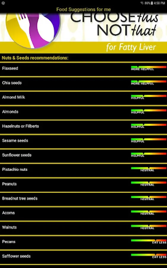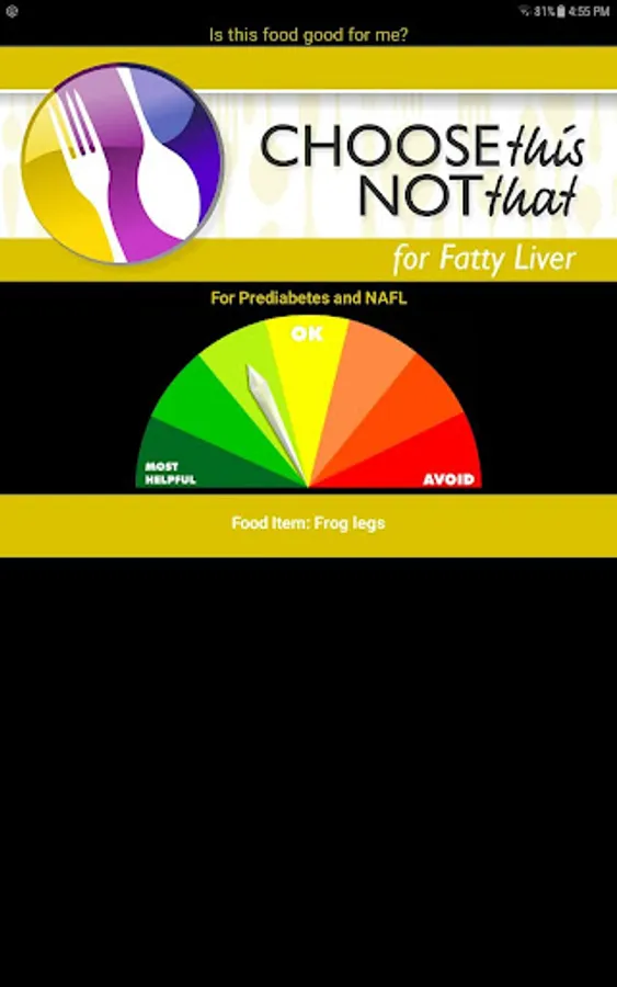 Choose This not That for Fatty Liver. Inside this colorful app, you will find easy to follow suggestions on how to improve your health through nutrition and the food choices you make every day. This app provides comprehensive and actionable nutrition guidelines for how to reduce your risk, prevent and combat Non-Alcoholic Fatty Liver Disease, its symptoms and complications.