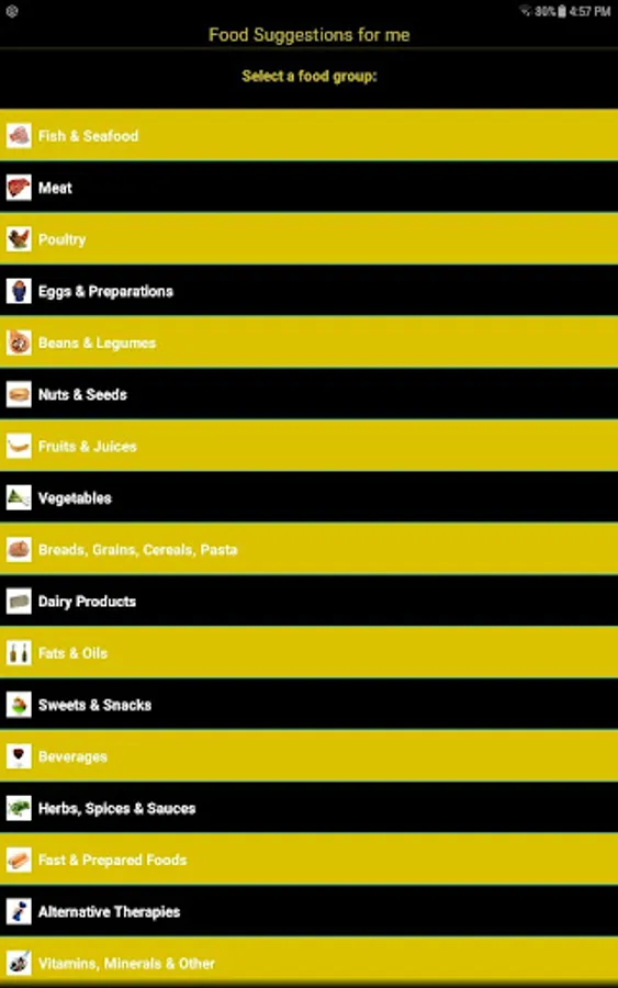 • Food Suggestions. The best food choices within a food group, based on your personal profile. An extremely valuable tool when at restaurants or when grocery shopping. Over 850 natural food items and growing number of recipes are included.
