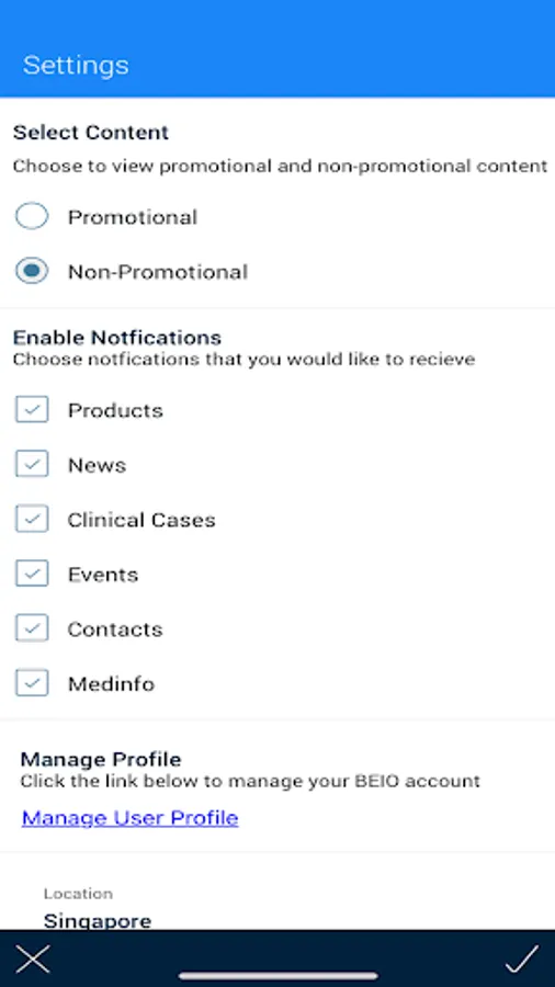 The user has the option to view either promotional or non-promotional content by switching from one to the other, from the “settings” section of the App.