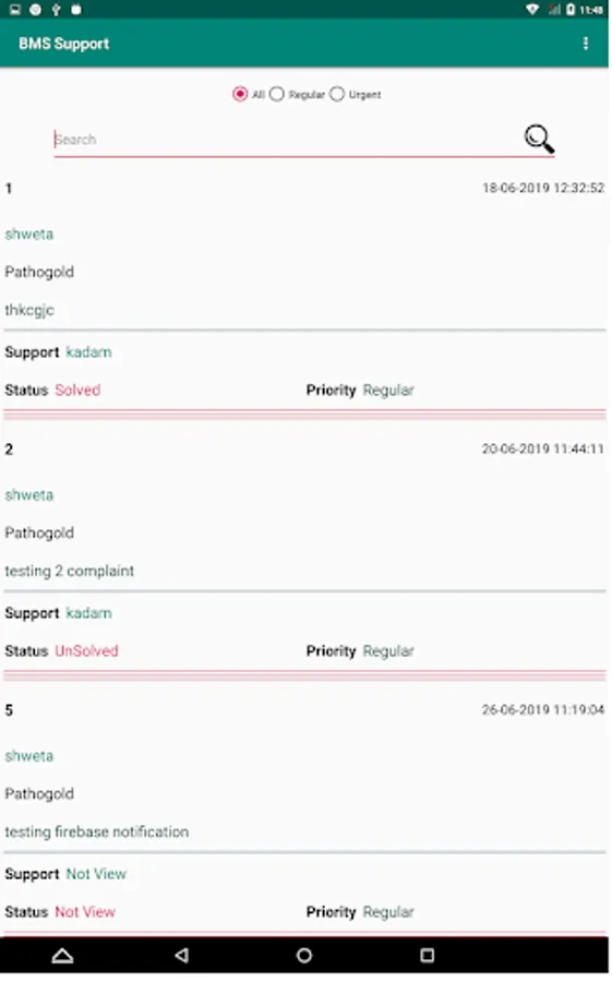 BMS Client can send complaints & track their complaint using application.All complaint tracking under birlamedisoft Senior Developer and high level management