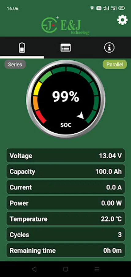 The Apps main feature is to monitor the details of the E&J Lithium batteries. It can monitor multiple batteries at the same time. Showing the main data details after series or parallel, showing details of each battery. re-nameable each battery pack and auto-connect.