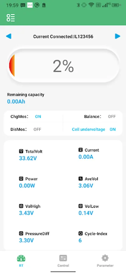 7. The APP can connect multiple batteries at a time, and the data of another battery can be viewed by switching between left and right pages.