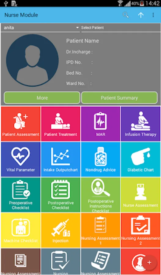 Nurse Module is Related to the nurse workbench , from that nurse can manage all her daily task and manage all the patient Record.