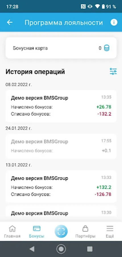 Connect geo-notifications to always know that there is a partner of the program nearby, from whom you can spend the accumulated bonuses.