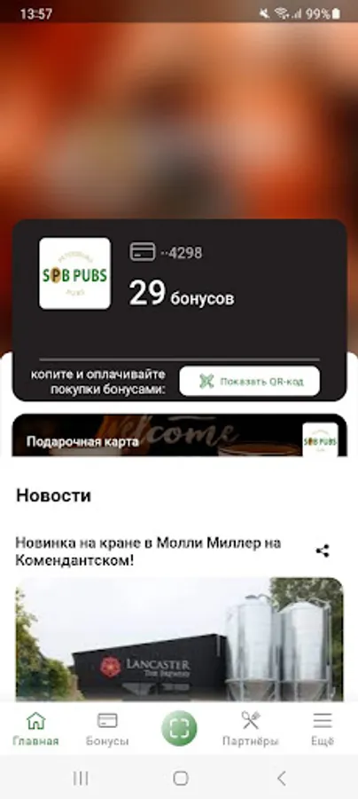 Bonus program of Pub St. Petersburg. Get a card for free, accumulate bonuses with each visit and pay for orders with bonuses in part or in full. Your electronic card is always with you.