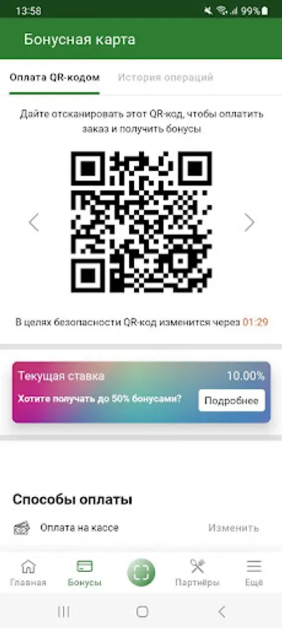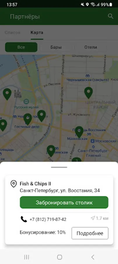 Connect geo-push notifications to always know that there is a program partner nearby where you can spend your accumulated bonuses.