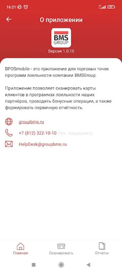 The application allows you to scan customer cards of BMSGroup loyalty programs and carry out bonus transactions.